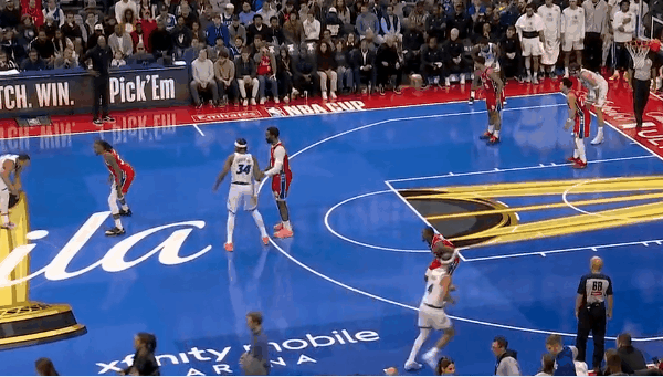在上半场比赛中,两队曾发生一起冲突:在魔术队的一次进攻中,两队的内线球员温德尔-卡特和德拉蒙德在三分弧顶抢位过程中发生推搡,在对峙过程中,德拉蒙德在给了卡特一拳后又摆出了略显滑稽的拳击姿势。随后双方球员都参与其中,好在裁判和双方教练及时介入阻止了这次冲突的扩大。